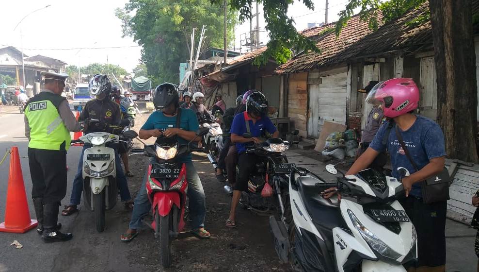 Semuanya yang melintas dihentikan dan dilakukan pemeriksaan surat-surat (SIM dan STNK) serta penggunaan alat keselamatan berupa helm standard.