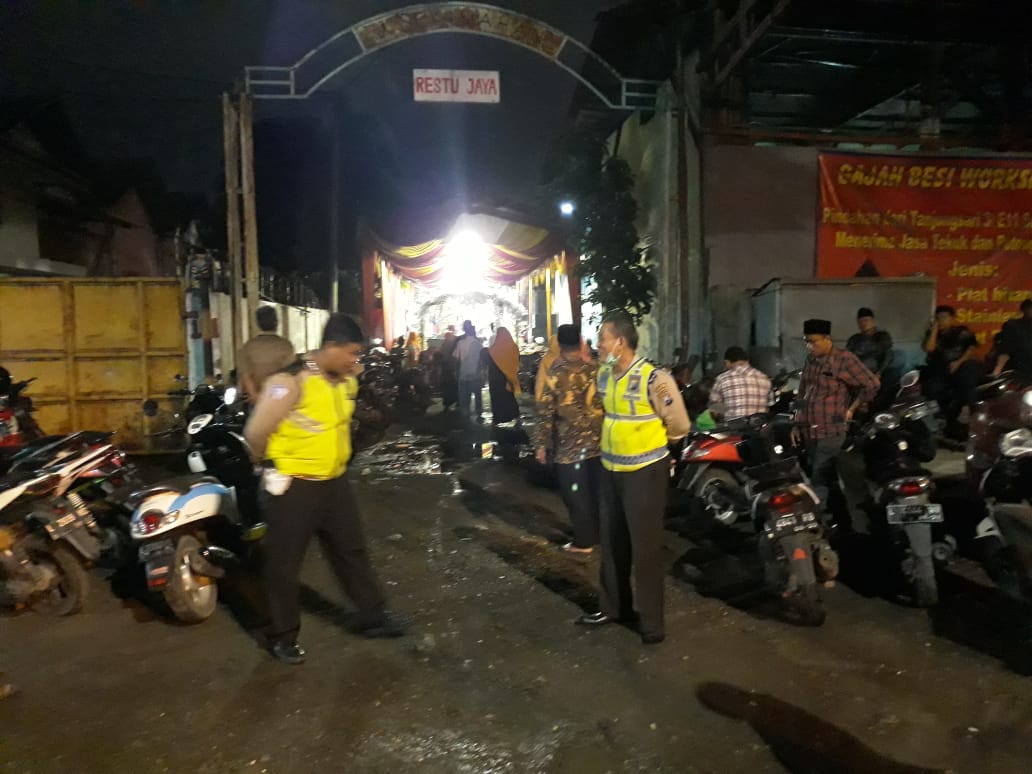 Seputarperak.com- Pengamanan dilakukan personil Polsek Asemrowo, Polres Pelabuhan Tanjung Perak di acara resepsi pernikahan warga Jalan Sekolahan, yang menyertakan hiburan musik dangdut, Jumat malam, 21 Pebruari 2020.