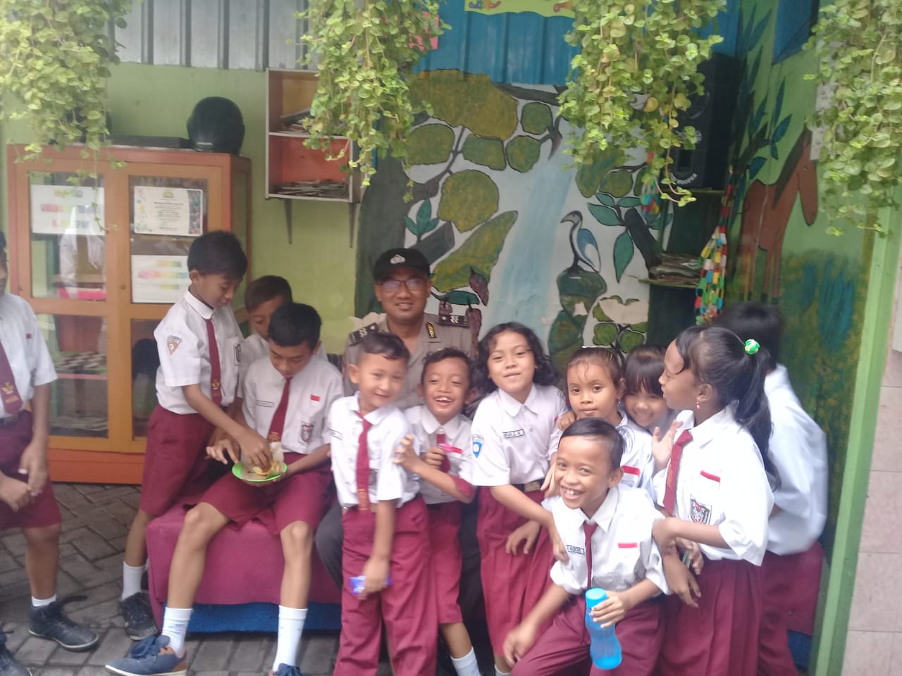Seputarperak.com- Kunjungan dilakukan Aiptu Hananto, Babinkamtibmas Bulak Banteng, Polsek Kenjeran, Polres Pelabuhan Tanjung Perak di SDN Bulak Rukem I, Jalan Kyai Tambak Deres, Senin pagi, 24 Pebruari 2020.
