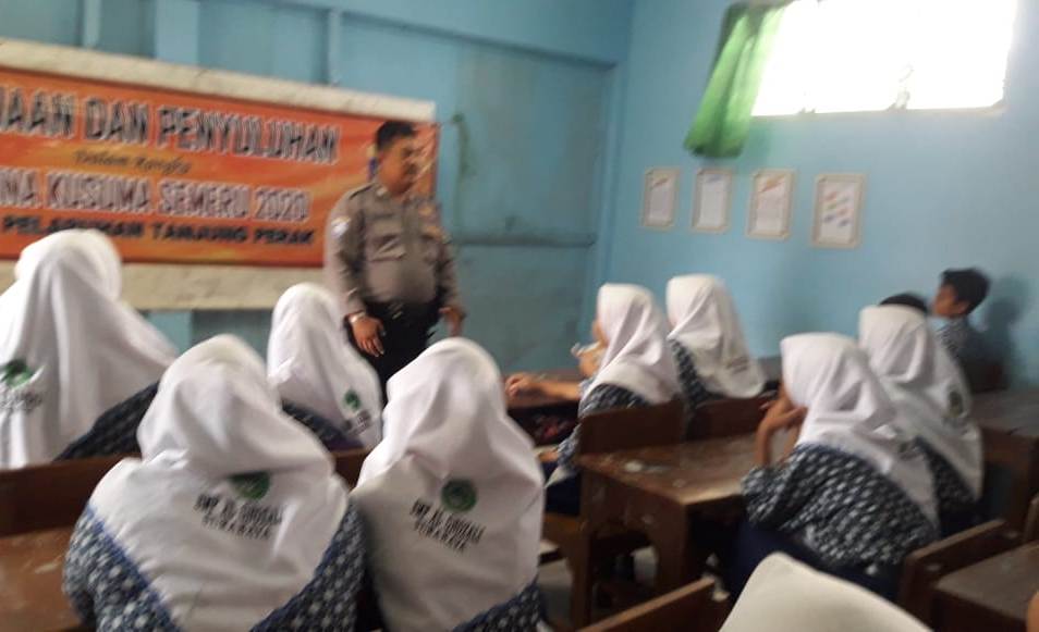 Seputarperak.com- Penyuluhan bahaya narkoba disampaikan Bripka Victor Sumbodo, Babinkamtibmas Ujung, Polsek Semampir, Polres Pelabuhan Tanjung Perak kepada murid-murid SMA Attarbiyah, Jalan Hangtuah.
