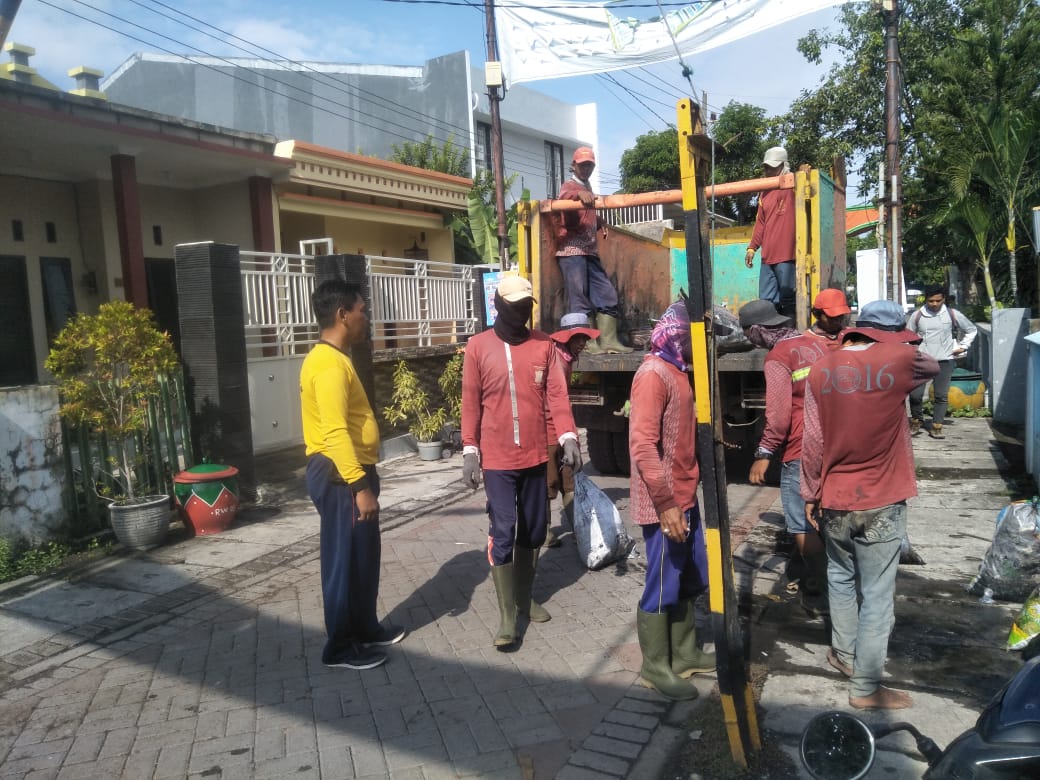 Seputarperak.com- Kanit Binmas Polsek Kenjeran, Polres Pelabuhan Tanjung Perak, Ipda Dwi Rahardjo ikut membantu kegiatan kerja bakti yang dilakukan warga RW 01, Jalan Bulak Rukem Timur, Minggu pagi, 1 Maret 2020.