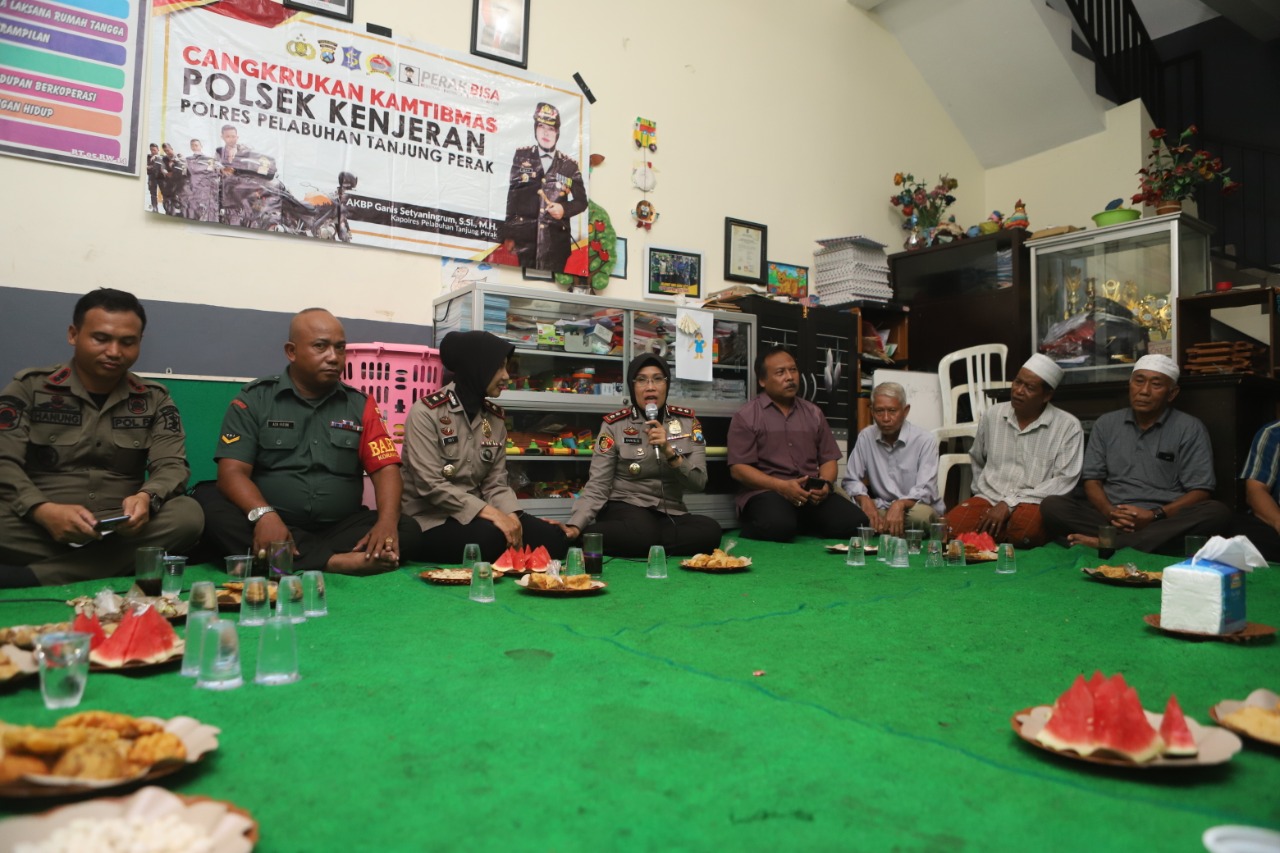 Seputarperak.com- Kapolres Pelabuhan Tanjung Perak, AKBP Ganis Setyaningrum, S.Si, MH, memimpin acara cangkrukan yang digelar Polsek Kenjeran di Balai RT 05 RW 14, Kelurahan Sidotopo Wetan, Senin malam, 2 Maret 2020.