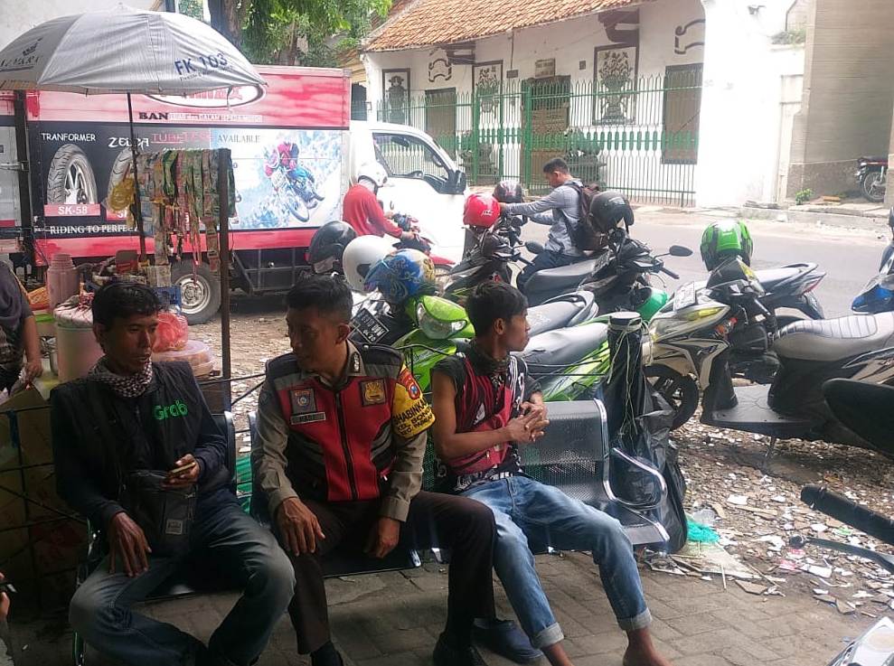 Seputarperak.com- Himbauan keselamatan berkendara di musim hujan disampaikan Aiptu Made Suarthana, Babinkamtibmas Bongkaran, Polsek Pabean Cantikan, Polres Pelabuhan Tanjung Perak kepada driver ojek online yang ditemui di Jalan Karet, Jumat siang, 6 Maret 2020.