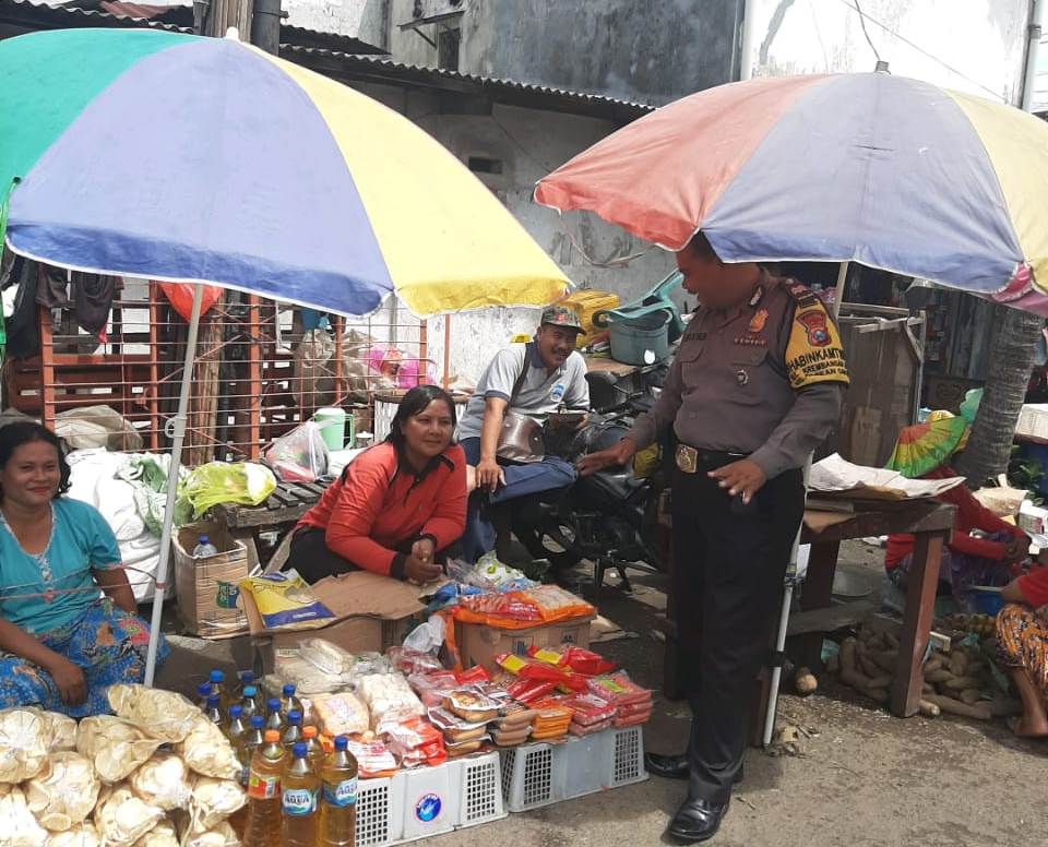 Seputarperak.com- Himbauan waspada uang palsu disampaikan Aiptu M Yasin, Babinkamtibmas Krembangan Utara, Polsek Pabean Cantikan, Polres Pelabuhan Tanjung Perak kepada para pedagang di Pasar Kebalen, Sabtu pagi, 7 Maret 2020.