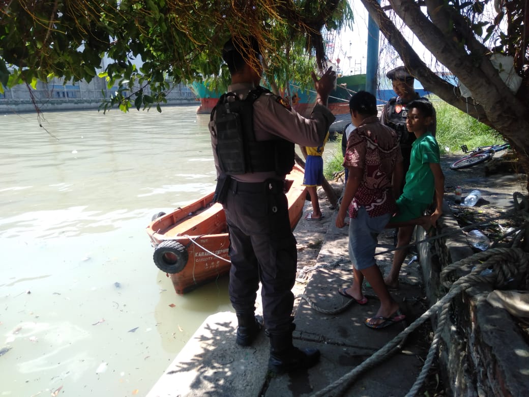Seputarperak.com- Pengecekan debit air dilakukan personil Satsabhara Polres Pelabuhan Tanjung Perak di seputaran Pelabuhan Kalimas, Rabu pagi, 18 Maret 2020.