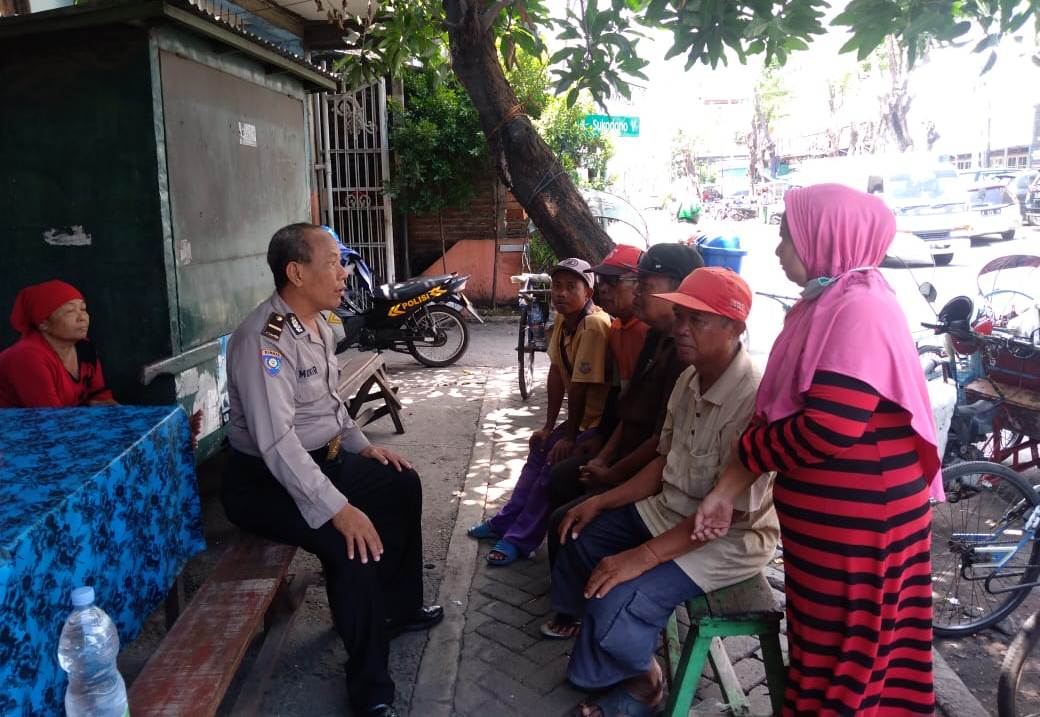 Seputarperak.com- Kunjungan dilakukan Ipda Munir, Panit Binmas Polsek Semampir, Polres Pelabuhan Tanjung Perak ke pemukiman Jalan Sukodono, Jumat pagi, 20 Maret 2020.
