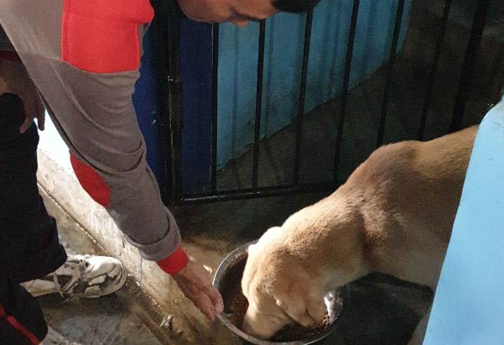 Usai dimandikan, anjing peliharaan Unit Satwa diberikan makanan yang cukup kebutuhan gizi, agar memiliki kekebalan tubuh untuk mengkal virus corona.
