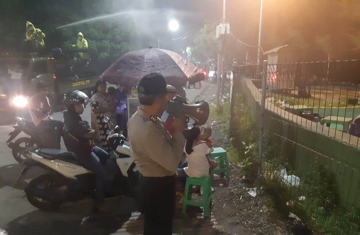 Beberapa kali personil patroli berhenti untuk melakukan pemantauan dan membubarkan keramaian.
