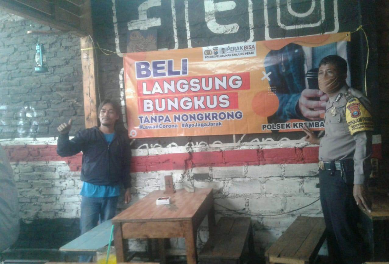 Selain melakukan pemasangan spanduk, Aiptu Mulyadi juga menyampaikan kepada pengunjung Warkop agar mereka menjaga jarak duduk, minimal satu meter, untuk mencegah penularan virus corona.