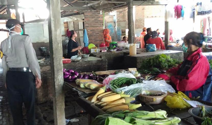 Seputarperak.com- Kunjungan dilakukan Aiptu Hari Kurniawan, Babinkamtibmas Wonokusumo, Polsek Semampir, Polres Pelabuhan Tanjung Perak di pasar tradisional, Jalan Mrutu Kalianyar, Selasa pagi, 7 April 2020.