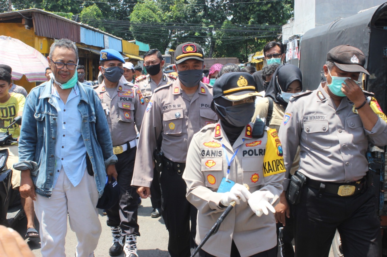 Seputarperak.com- Kapolres Pelabuhan Tanjung Perak, AKBP Ganis Setyaningrum, S.Si, MH melakukan kegiatan inspeksi mendadak (Sidak) di Pasar Kilometer, Jalan Teluk Aru, Perak Utara, Selasa pagi, 7 April 2020.