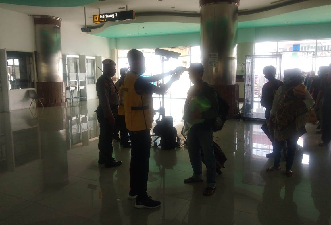 Pemeriksaan suhu badan ini dilakukan untuk mengantisipasi adanya penumpang kapal yang mengalami demam karena terinveksi virus corona.