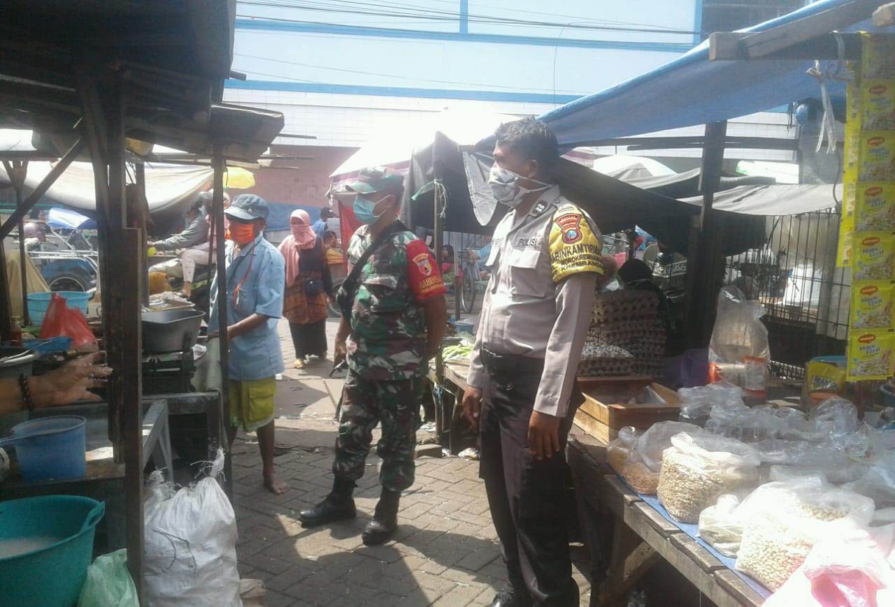 Seputarperak.com- Pemantauan harga sembako dilakukan Aiptu Mulyadi Herwoyo, Babinkamtibmas Morokrembangan, Polsek Krembangan, Polres Pelabuhan Tanjung Perak di Pasar Kalianak, Rabu siang, 8 April 2020.