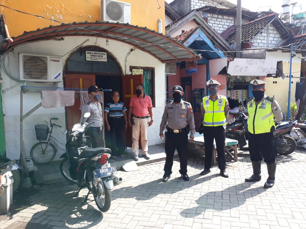 Seputarperak.com- Pemantauan dilakukan Polsek Asemrowo, Polres Pelabuhan Tanjung Perak di 2 gereja yang ada di wilayahnya, untuk mengantisipasi adanya kegiatan ibadah, Minggu pagi, 12 April 2020.