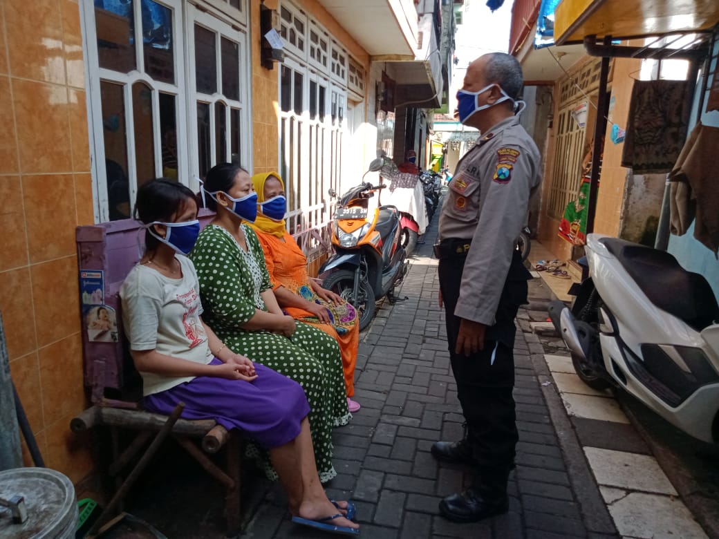 Seputarperak.com- Himbauan penggunaan masker disampaikan Ipda Munir, Panit Binmas Polsek Semampir, Polres Pelabuhan Tanjung Perak kepada warga RT 02 RW 04 Jalan Sidotopo Sekolahan.
