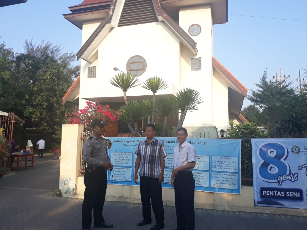Seputarperak.com- Polsek Krembangan, Polres Pelabuhan Tanjung Perak melaksanakan Pengamanan (PAM) ibadah rutin di Gereja Santo Mikael, Jalan Tanjung Sadari nomor 49, Surabaya, Minggu pagi, 5 Agustus 2018.