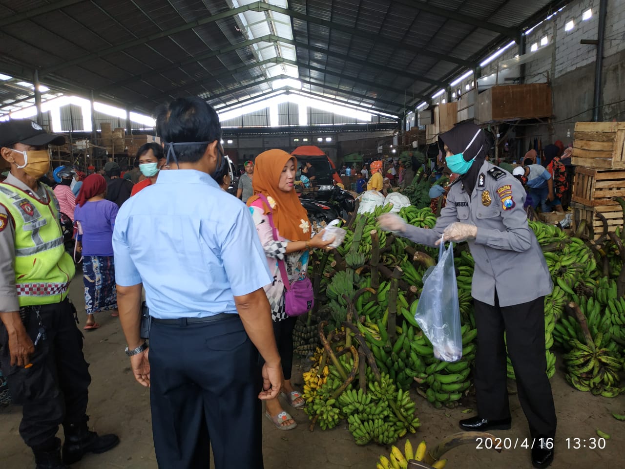 Seputarperak.com- Personil Polwan Polres Pelabuhan Tanjung Perak bersama anggota Polsek Semampir membagikan nasi bungkus gratis kepada para pedagang Pasar Wonokusumo.