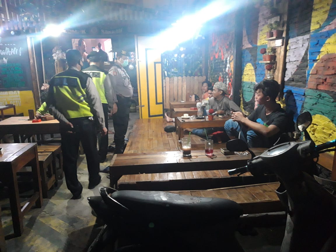 Seputarperak.com- Patroli dilakukan personil Polsek Krembangan, Polres Pelabuhan Tanjung Perak di warung kopi dan café yang ada di wilayahnya, Jumat malam, 17 April 2020.