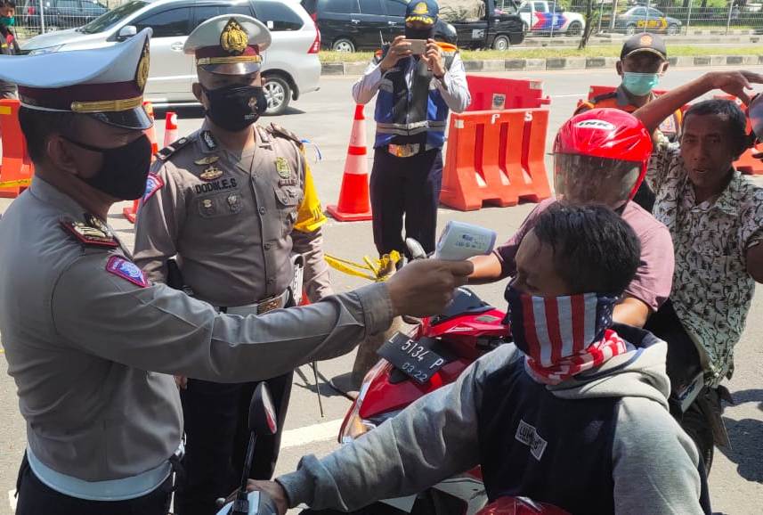 Dalam kegiatan ini semua pengendara yang melintas diperiksa kelengkapan surat-suratnya (SIM dan STNK) serta dilakukan pemeriksaan suhu badan untuk mengantisipasi adanya pengendara yang mengalami demam atau tanda-tanda terjangkit virus corona.