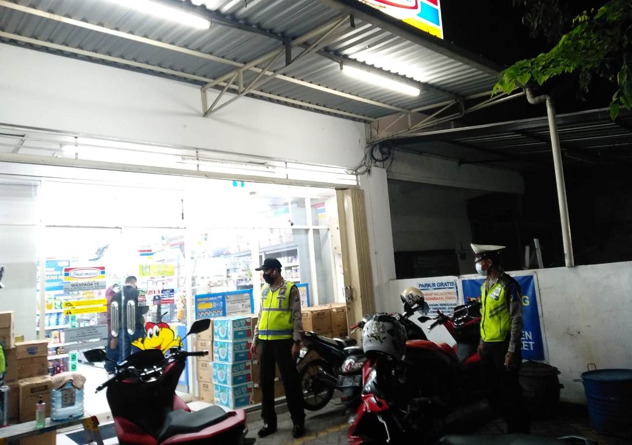 Seputarperak.com- Patroli malam dilakukan personil Polsek Pabean Cantikan, Polres Pelabuhan Tanjung Perak di mini market Indomart, Jalan Waspada, Selasa malam, 21 April 2020.