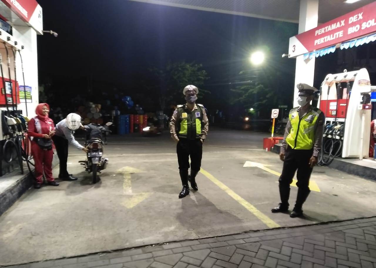 Seputarperak.com- Polsek Pabean Cantikan, Polres Pelabuhan Tanjung Perak menggelar patroli malam di SPBU Jalan Stasiun Kota, Selasa, 21 April 2020.