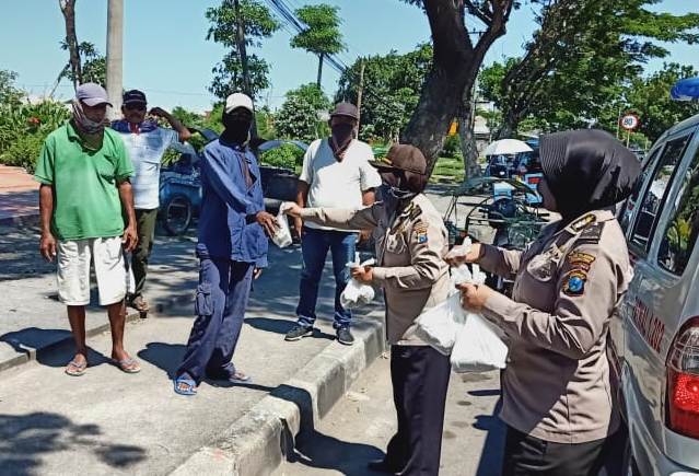 Kegiatan ini dilakukan personil Polsek Kenjeran bersama anggota Polwan Polres Pelabuhan Tanjung Perak, sebagai bentuk kepedulian terhadap masyarakat yang mengalami kemerosotan penghasilan akibat Pandemi Covid-19.