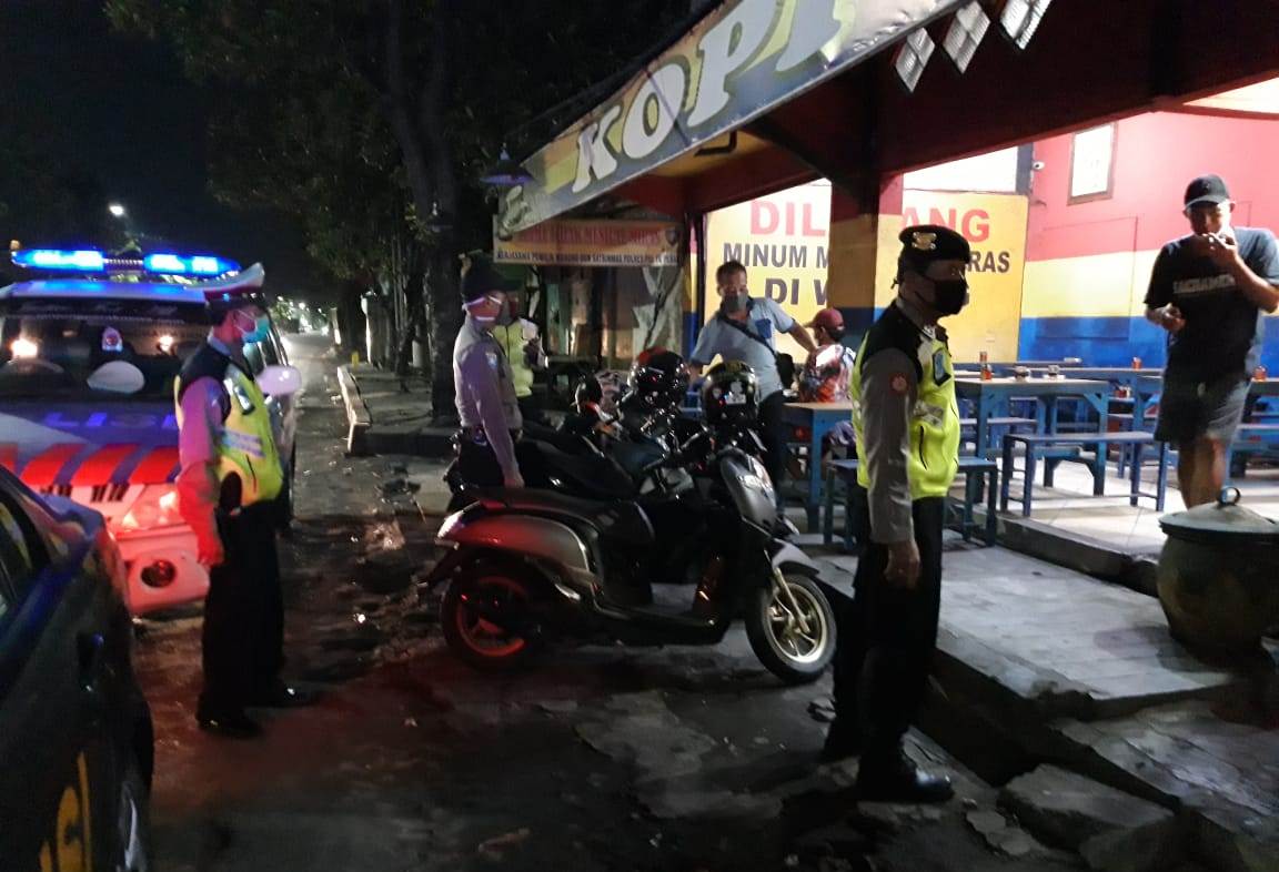 Seputarperak.com- Patroli malam dilakukan personil Polsek Krembangan, Polres Pelabuhan Tanjung Perak di warung kopi (Warkop) dan café di wilayahnya, Rabu malam, 22 April 2020.