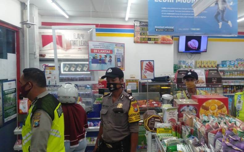 Seputarperak.com- Patroli dalam rangka pengamanan wilayah dilakukan Polsek Semampir, Polres Pelabuhan Tanjung Perak di mini market Indomart, Jalan Sultan Iskandar Muda, Kamis malam, 23 April 2020.