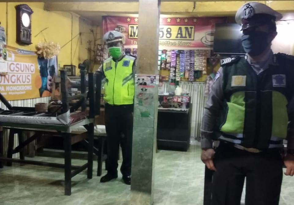 Seputarperak.com- Patroli dilakukan personil Polsek Pabean Cantikan, Polres Pelabuhan Tanjung Perak di warung kopi Maju Mapan, Jalan Benteng, Kamis malam, 30 April 2020.