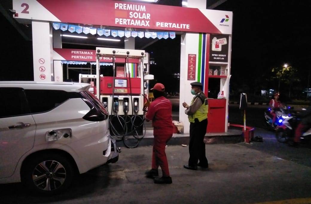 Diantaranya seperti yang dilakukan personil Polsek Pabean Cantikan di SPBU Jalan Stasiun Kota, Jumat malam, 1 Mei 2020.