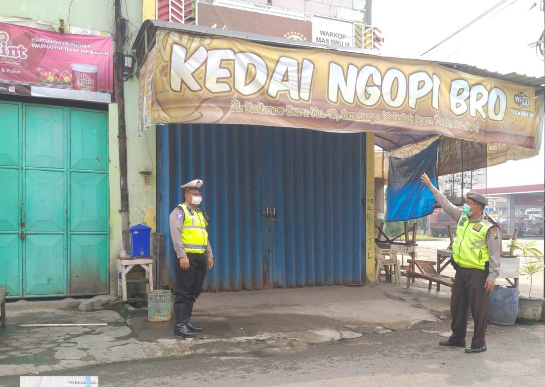 Seputarperak.com- Patroli dilakukan personil Polsek Pabean Cantikan, Polres Pelabuhan Tanjung Perak untuk memantau aktivitas warung kopi (Warkop) di sepanjang Jalan Kembang Jepun, Minggu siang, 3 Mei 2020.