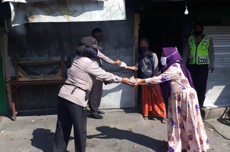 Seputarperak.com- Polsek Krembangan, Polres Pelabuhan Tanjung Perak membagikan nasi bungkus untuk masyarakat terdampak Pandemi Covid-19 di Jalan Gresik PPI, Rabu sore, 6 Mei 2020.