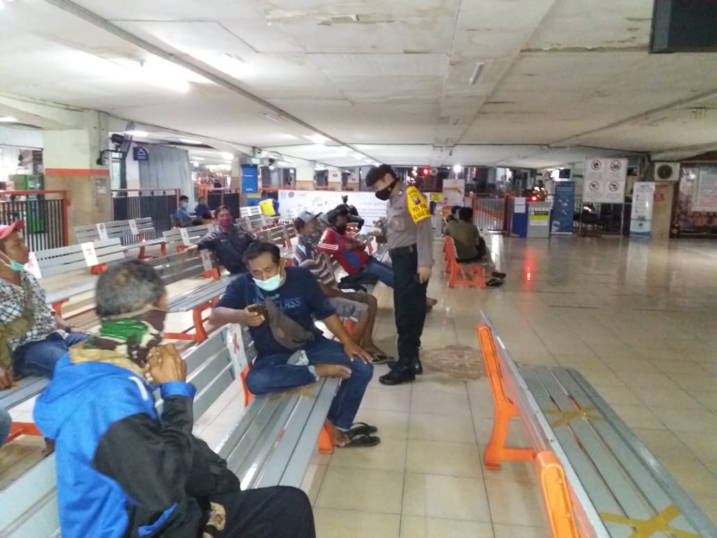 Seputarperak.com- Personil Pospam Operasi Ketupat Semeru Polsek Pabean Cantikan, Polres Pelabuhan Tanjung Perak melakukan pemeriksaan suhu badan para penumpang kereta api di Stasiun Surabaya Kota, Rabu malam, 6 Mei 2020.