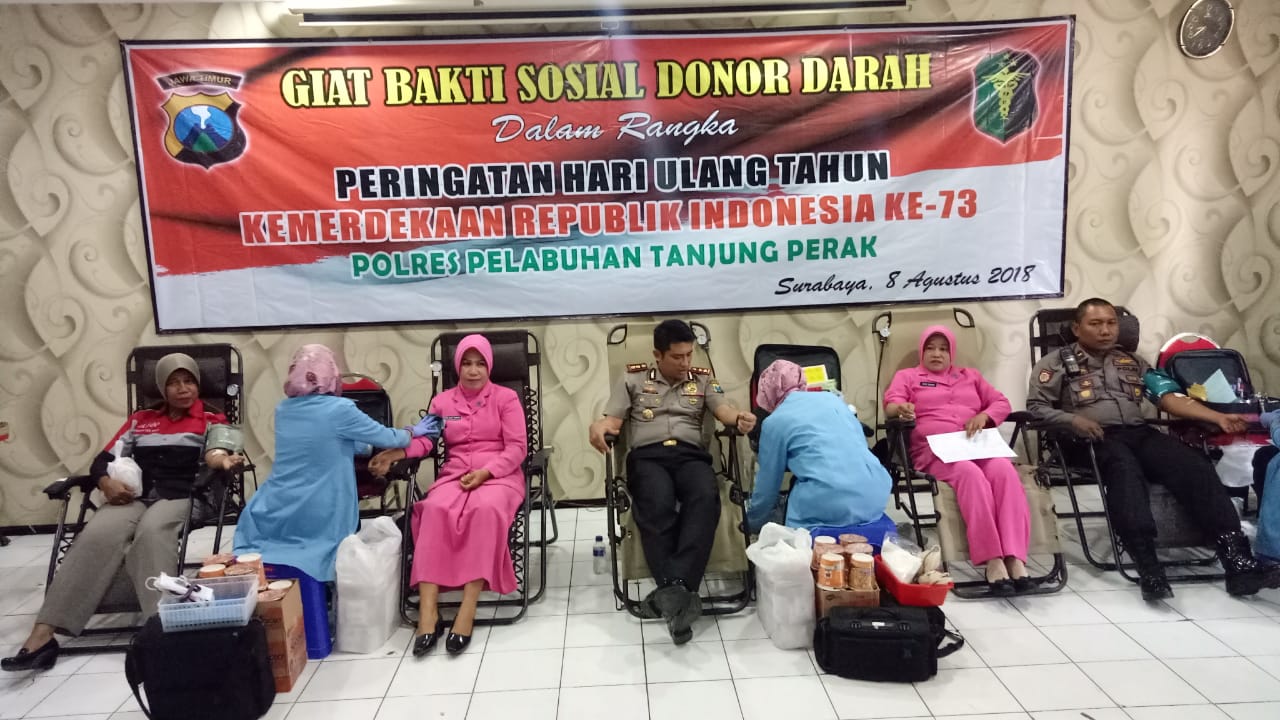 Menurut Kasubbag Humas Polres Pelabuhan Tanjung Perak, AKP Sugiati, kegiatan donor darah ini dilakukan dalam rangka peringatan HUT RI ke 73.