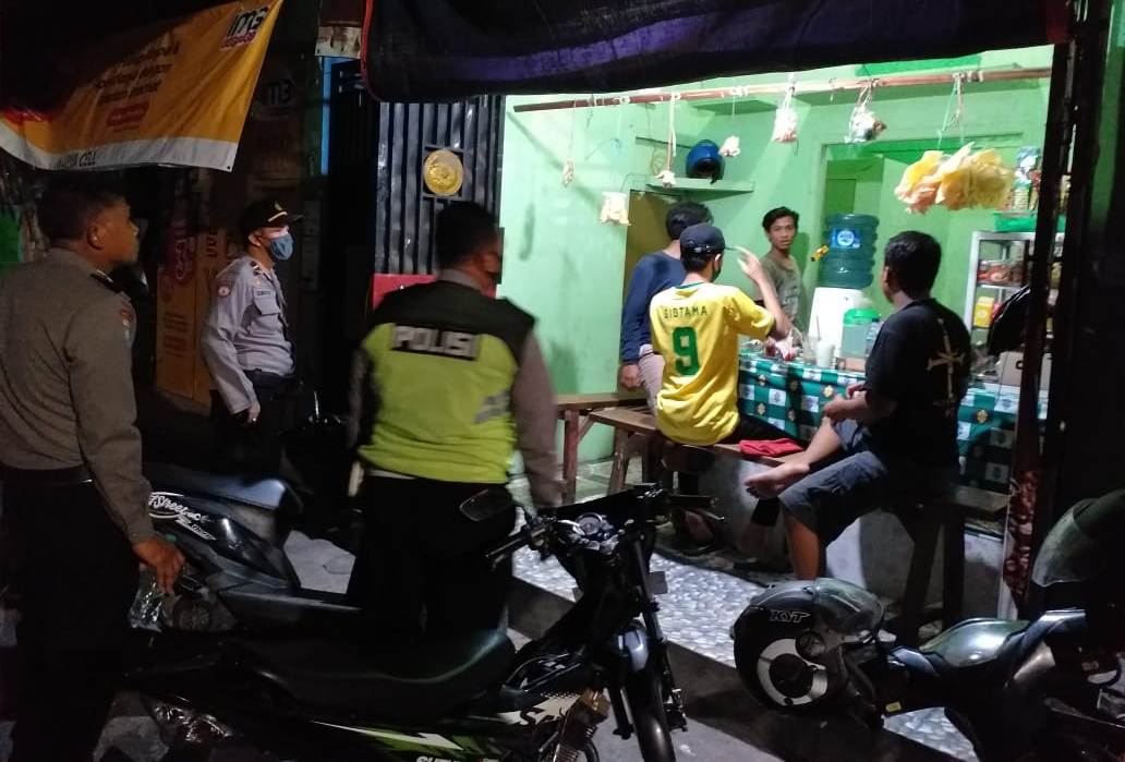 Seputarperak.com- Patroli malam di warung kopi (Warkop) dan café dalam rangka menegakkan aturan PSBB (Pembatasan Sosial Berskala Besar) terus dilakukan Polsek Krembangan, Polres Pelabuhan Tanjung Perak.