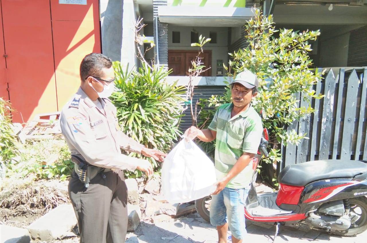 Aiptu Lagiman membagikan nasi bungkus tersebut diantaranya kepada warga penghuni kos, buruk bangunan, penarik becak dan pedagang kaki lima (PKL).
