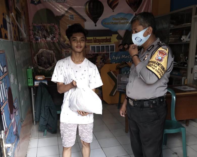 Seputarperak.com- Pembagian Sembako dari program CSR dilakukan Aiptu Heru Winarto, Babinkamtibmas Perak Utara, Polsek Pabean Cantikan, Polres Pelabuhan Tanjung Perak, Minggu siang, 17 Mei 2020.