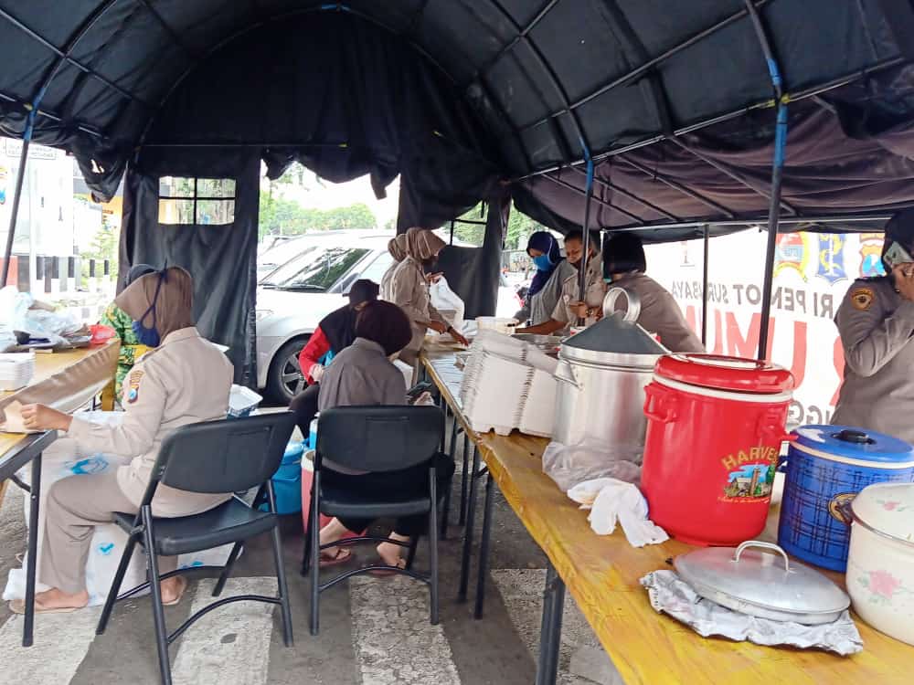 Sebanyak 1.000 nasi bungkus dibuat dan dikemas untuk kemudian dibagikan ke masyarakat di lima Polsek jajaran.