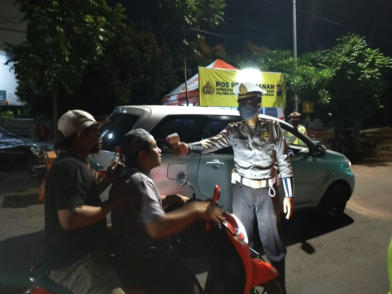 Dalam kegiatan ini semua kendaraan diberhentikan dan dilakukan pemeriksaan suhu badan terhadap para pengendara dan penumpang. Baik motor, mobil pribadi dan truk.