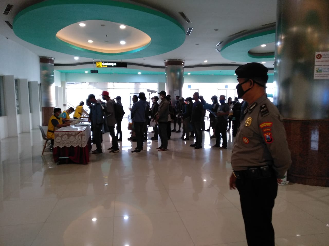 Saat itu penumpang yang turun sebanyak 90 orang. Mereka langsung dilakukan pemeriksaan oleh petugas KKP yang dipimpin dr Kristy di gedung penumpang GSN.
