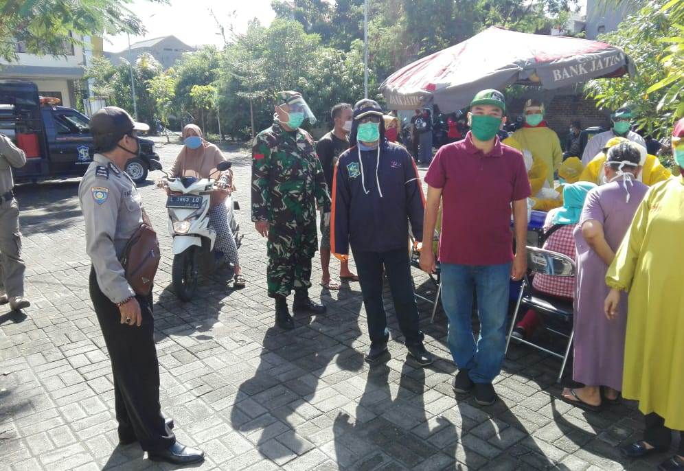 Seputarperak.com- Pengamanan dilakukan Aipda Fardiyan, Babinkamtibmas Tambak Wedi, Polsek Kenjeran, Polres Pelabuhan Tanjung Perak di kegiatan rapid test yang dilakukan petugas Puskesmas ke pedagang Pasar Pandang Wangi, Jalan Tambak Wedi Baru, Jumat, 22 Mei 2020.