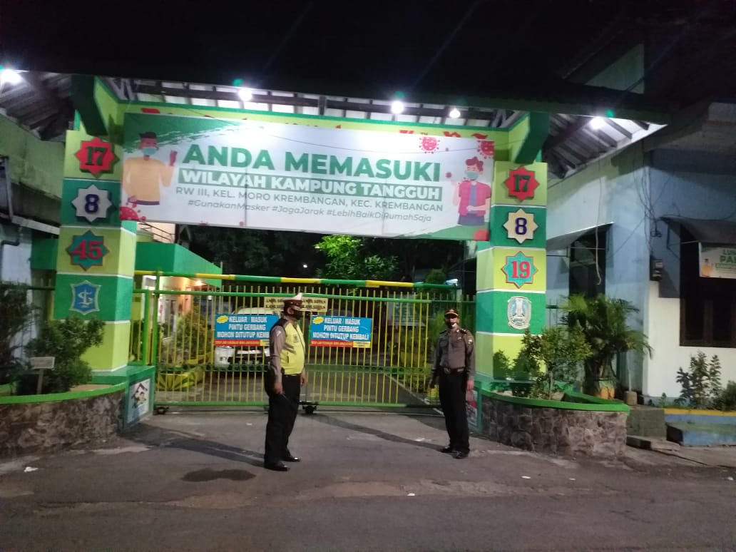 Seputarperak.com- Patroli mobile dilakukan personil Polsek Krembangan, Polres Pelabuhan Tanjung Perak untuk memantau keamanan di kampung-kampung, Minggu malam, 24 Mei 2020.