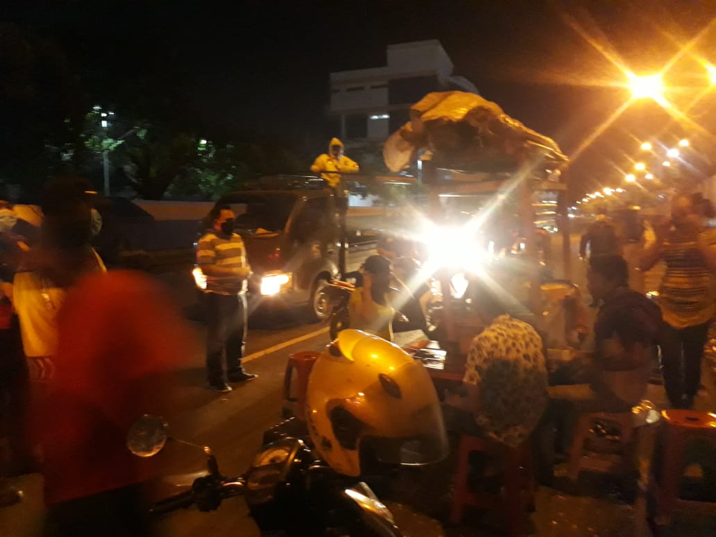 Disamping melakukan pembubaran terhadap pengunjung Warkop, personil patroli skala besar juga memerintahkan pemilik Warkop segera menutup tempat usahanya, karena sudah melewati batas aturan jam malam.