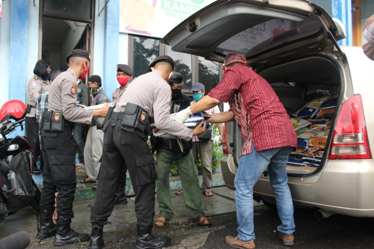 Seputarperak.com- Polres Pelabuhan Tanjung Perak membagikan bantuan Sembako berupa beras kepada masyarakat terdampak Pandemi Covid-19 di wilayahnya sekaligus ke lumbung pangan Kampung Tangguh, Kamis siang, 28 Mei 2020.