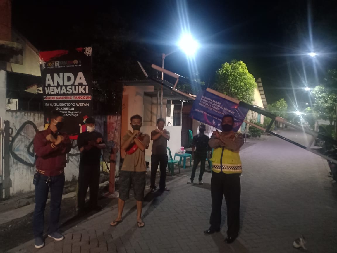 Seputarperak.com- Anggota piket Polsek Kenjeran, Polres Pelabuhan Tanjung Perak melaksanakan patroli ke Kampung Tangguh RW 11 Kelurahan Sidotopo Wetan, Sabtu malam, 30 Mei 2020.