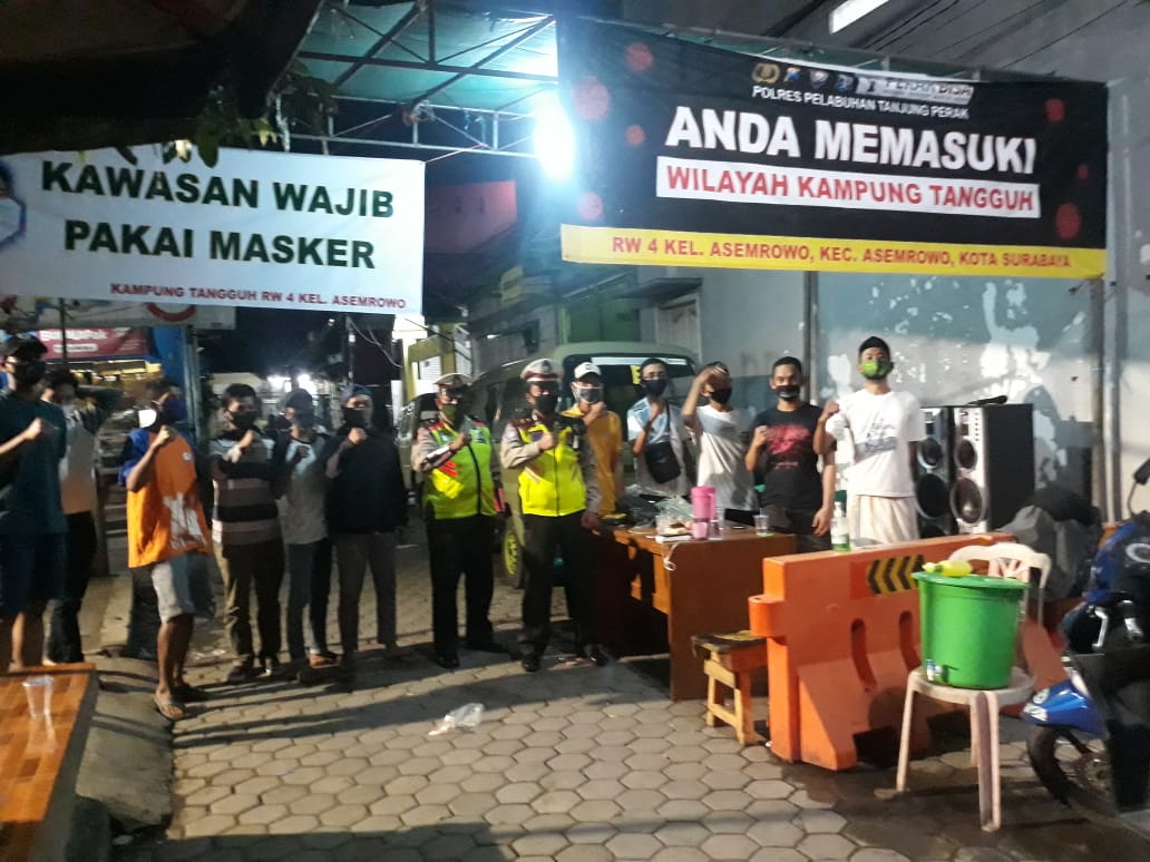 Seputarperak.com- Patroli dilakukan anggota Polsek Asemrowo, Polres Pelabuhan Tanjung Perak di Kampung Tangguh RW 04 Kelurahan Asemrowo, Sabtu malam, 30 Mei 2020.