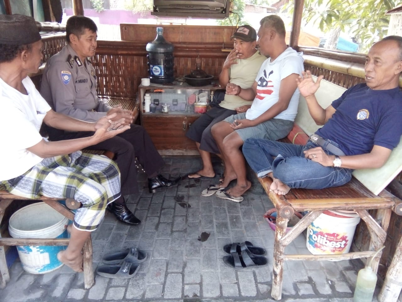 Jumat pagi, 10 Agustus 2018, Aiptu Muhadi Syukur mengunjungi warga yang tengah berada di pos kamling RT 03 RW 06, untuk menyampaikan himbauan tamu wajib lapor.