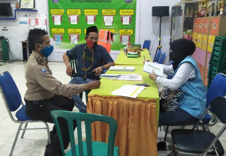 Seputarperak.com- Panit Binmas Polsek Asemrowo, Polres Pelabuhan Tanjung Perak, Ipda Eko Mustaghfirin melakukan koordinasi bersama Bapak Hadi selaku ketua RW 01 Kelurahan Asemrowo bersama kader PPK terkait giliran jaga relawan Penanganan Covid-19.