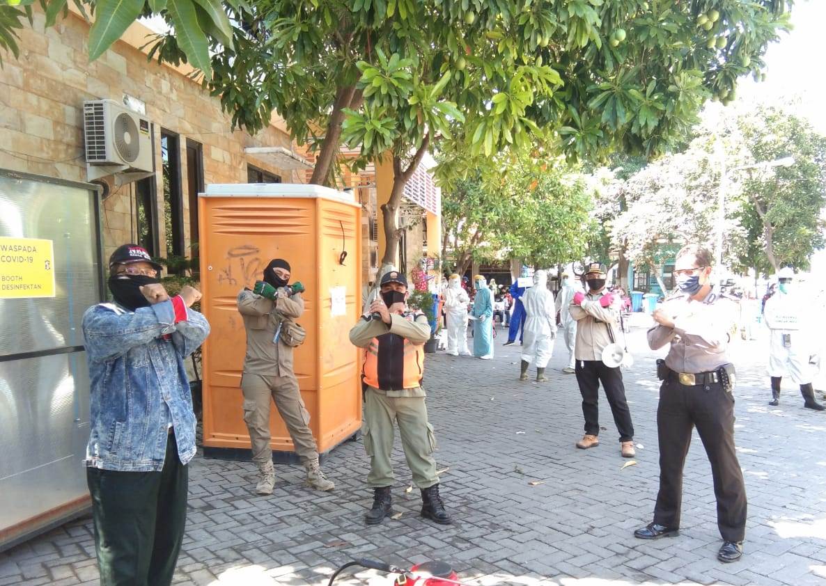 Seputarperak.com- Aiptu Lagiman, Babinkamtibmas Tanah Kali (Takal) Kedinding, Polsek Kenjeran, Polres Pelabuhan Tanjung Perak melakukan pengamanan kegiatan rapid test yang dilakukan di kantor Kelurahan Takal Kedinding, Jumat siang, 5 Juni 2020.