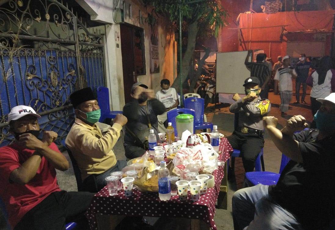 Seputarperak.com- Himbauan disampaikan Aiptu Tri Suhartono, Babinkamtibmas Sidotopo Wetan, Polsek Kenjeran, Polres Pelabuhan Tanjung Perak kepada warga RW 04 Jalan Bulak Banteng Kidul, yang melakukan penjagaan, Senin malam, 8 Juni 2020.